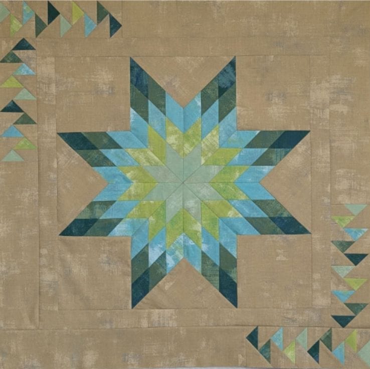 For those wanting a smaller LoneStar Block, the Migrating LoneStar is perfect! Its amazing how simple it is to make on our foundations. And no mountain of fabric in the middle when its all done. The foundation keeps those bias edges from stretching but it doesn't add any bulk or weight to the quilt. The spaces are not only numbered, but are labeled for which fabric goes in each spot, making it even easier to keep the colors where they should be. These Grunge Fabrics are in the Migrating LoneStar Fabric Kit.
