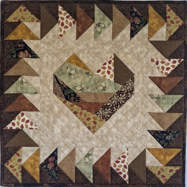 I started doing my "Live" shows/sew-alongs a couple weeks ago and after learning a little bit about the technical side of it, I must say, I am having fun with it. I am still experimenting with different camera angles but we will figure it out as we go. The first week, we made a Geese Around the Crazy Heart in Fall Colors. I know Fall is a long way off but those colors are my favorites and other than my Autumn Splendor table toppers, I don't have anything else that says "Fall."